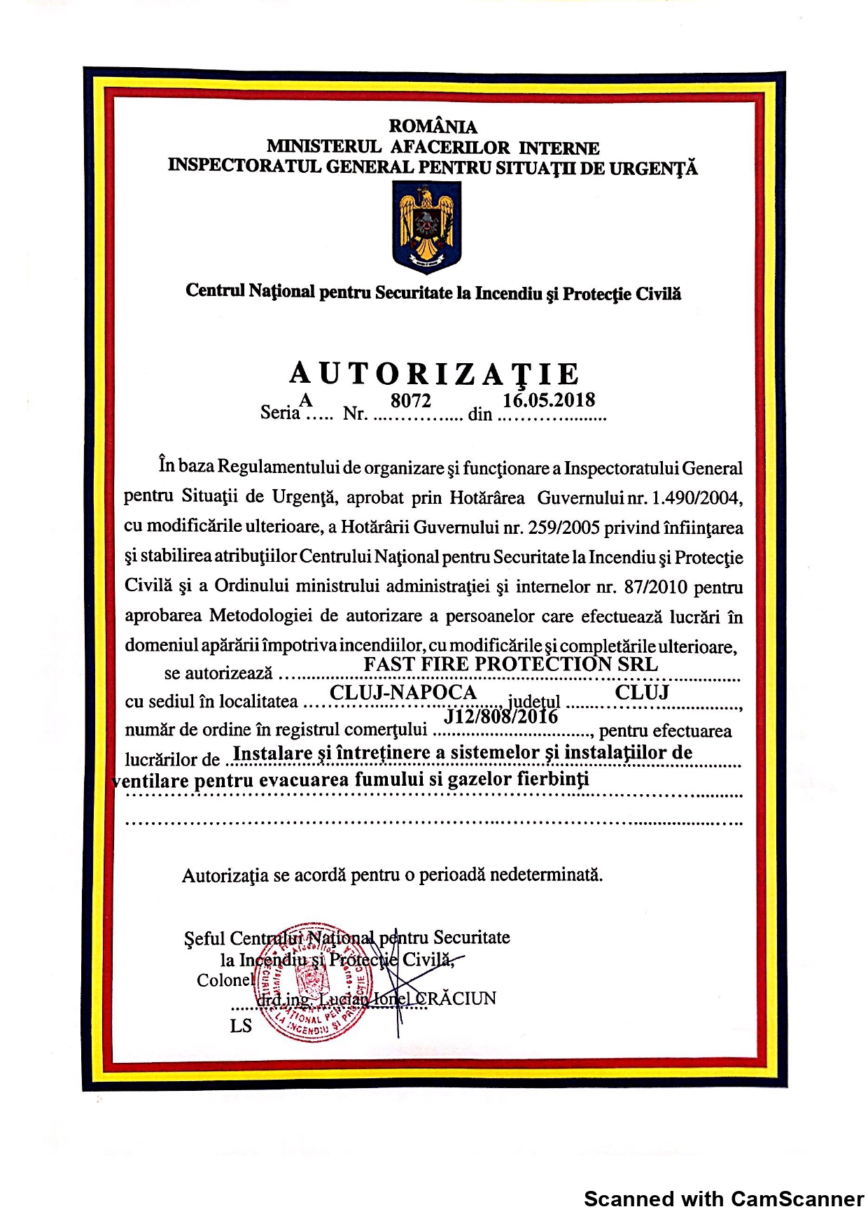 Firma noastra a luat nastere in anul 2016 si cea dintai activitate a fost dedicata stingatoarelor de incendiu (verificare, incarcare). In urmatorii doi ani ne-am specializat in tot ceea ce inseamna instalare si intretinere a sistemelor si instalatiilor de stingere a incendiilor.